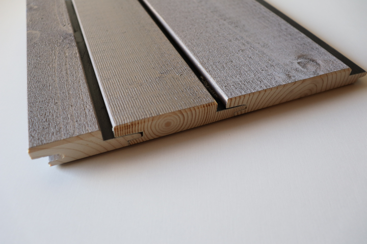 Fichten Schattennut Schalung, 19 x 127 mm,, Platingrau Spez.Mischung, Kamm RAL 9005 schwar